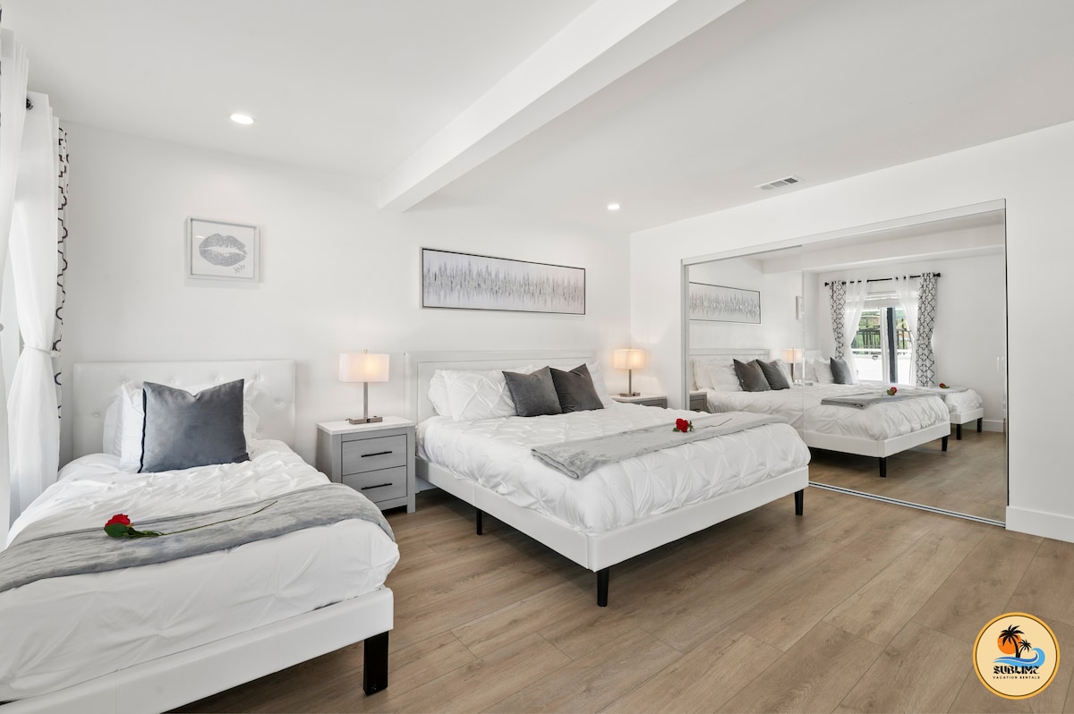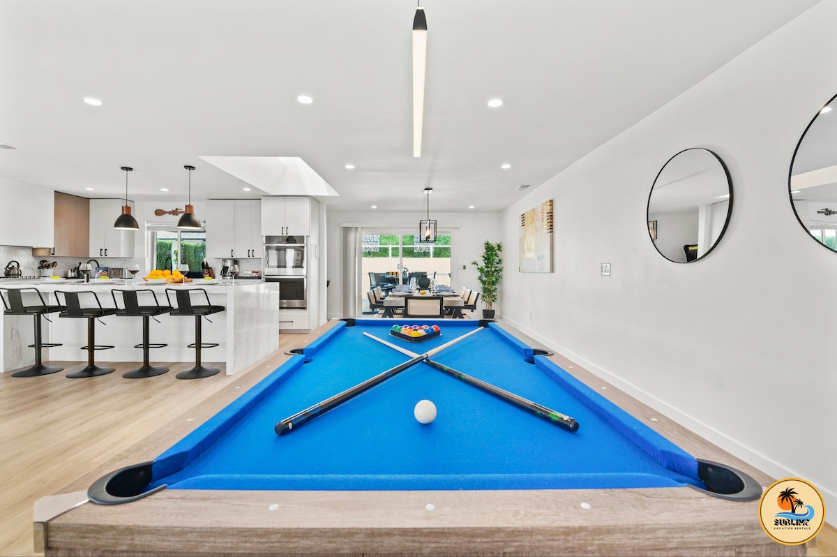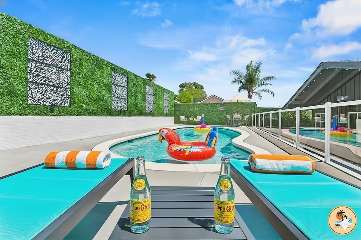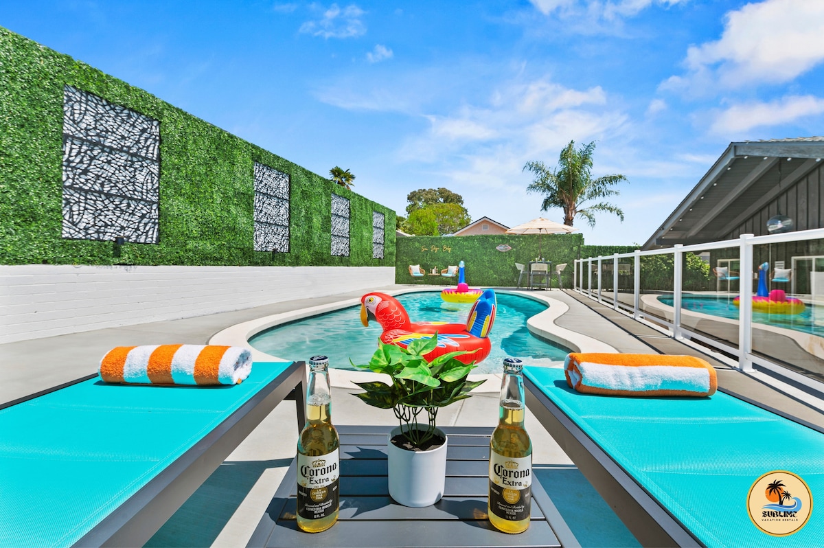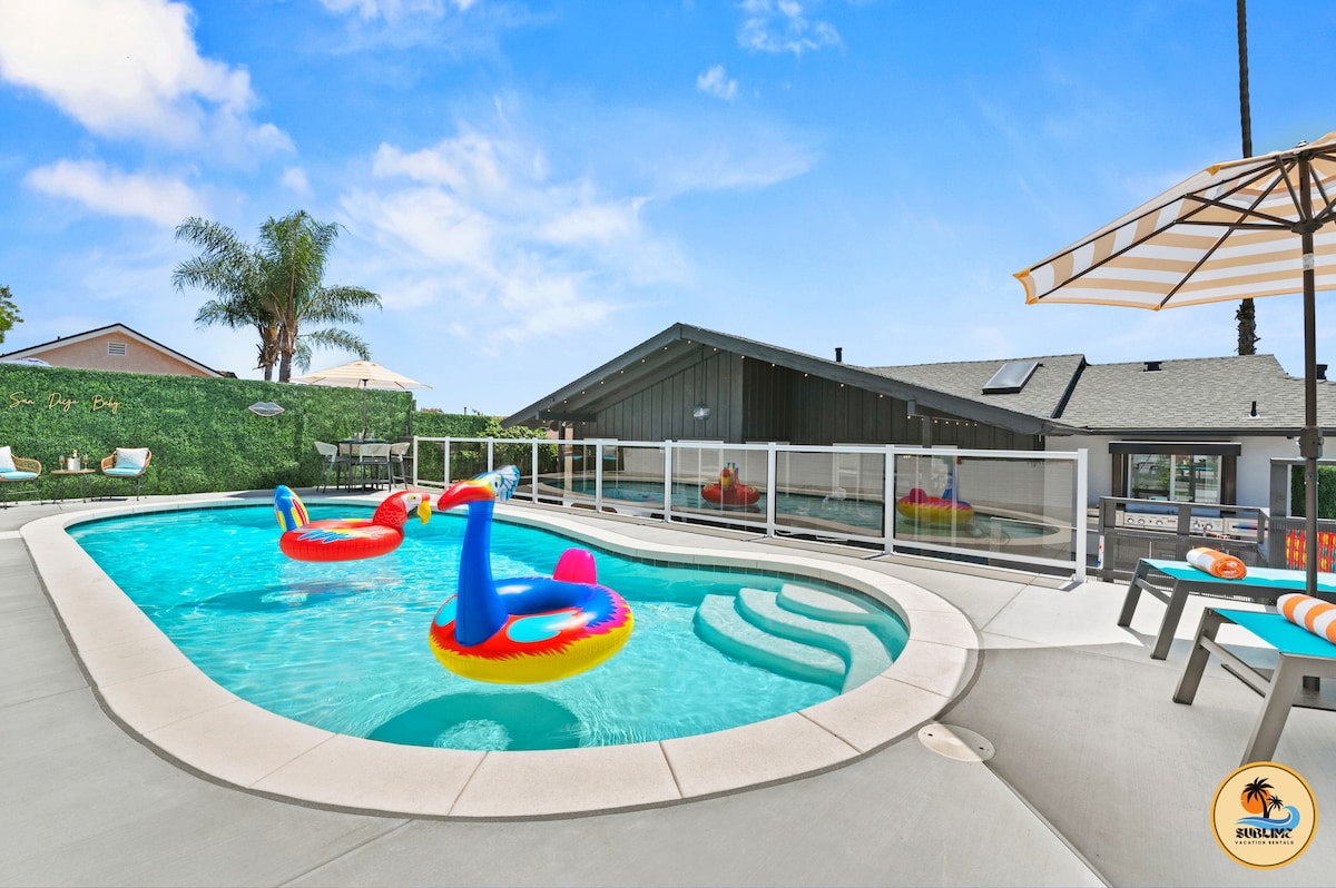 San DiegoCome make amazing memories at this spacious, stylish retreat! With two separate homes + bonus game room that doubles as an extra bedroom, there’s plenty of space for friends or families. You’ll have 7 bedrooms and 4 full baths, with enough sleeping arrangements for 18 guests. Kick back by the saltwater pool, unwind in the spa, hang out around the firepit, or enjoy the games we've got on hand. Inside, the space is modern and comfy, plus you’re super close to all the must-see spots in San Diego!
