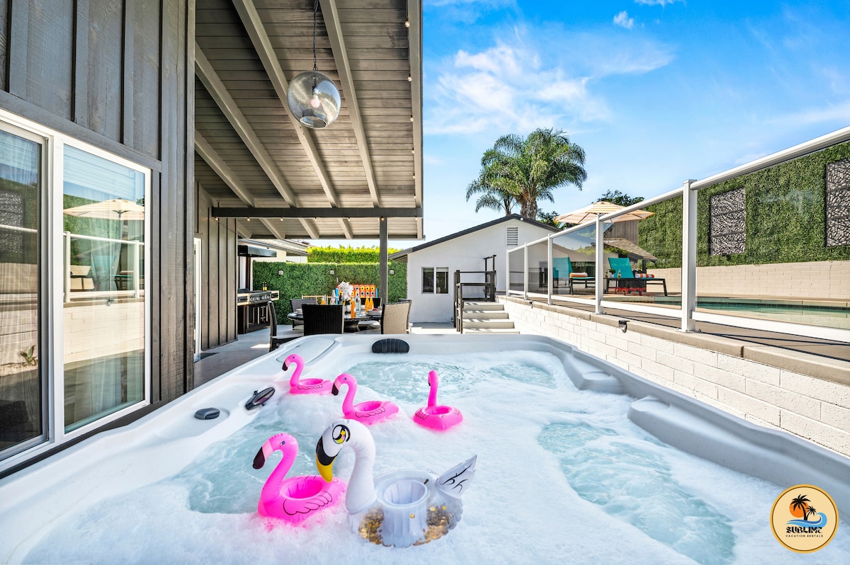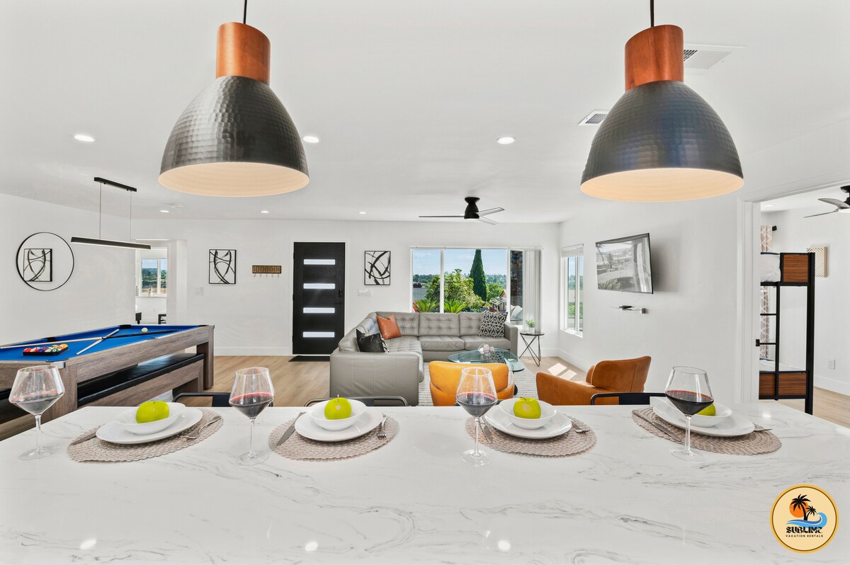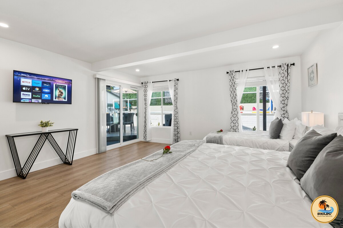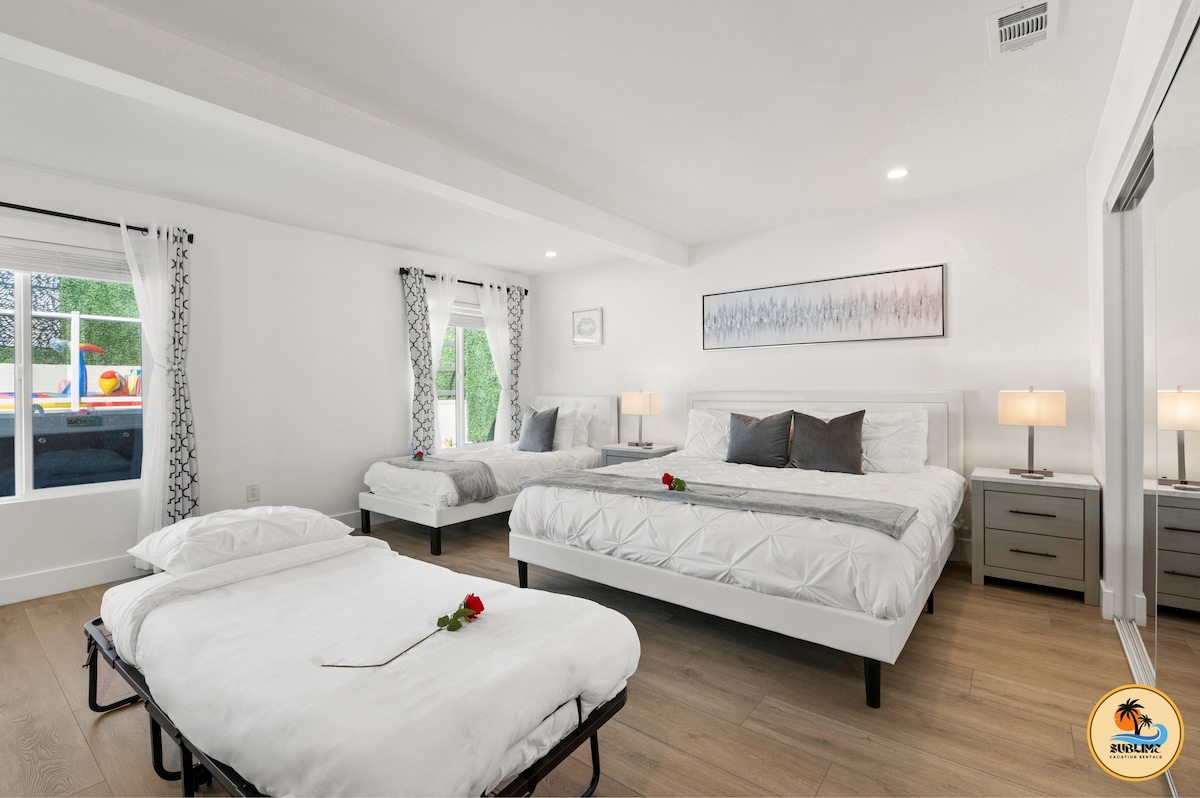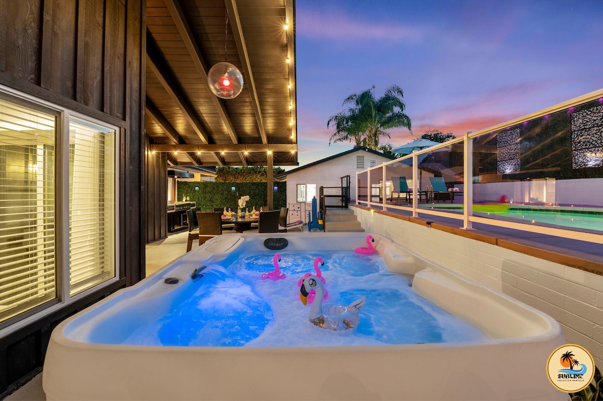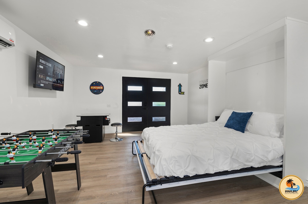 San DiegoCome make amazing memories at this spacious, stylish retreat! With two separate homes + bonus game room that doubles as an extra bedroom, there’s plenty of space for friends or families. You’ll have 7 bedrooms and 4 full baths, with enough sleeping arrangements for 18 guests. Kick back by the saltwater pool, unwind in the spa, hang out around the firepit, or enjoy the games we've got on hand. Inside, the space is modern and comfy, plus you’re super close to all the must-see spots in San Diego!