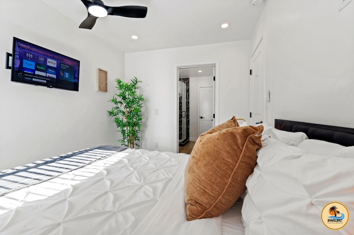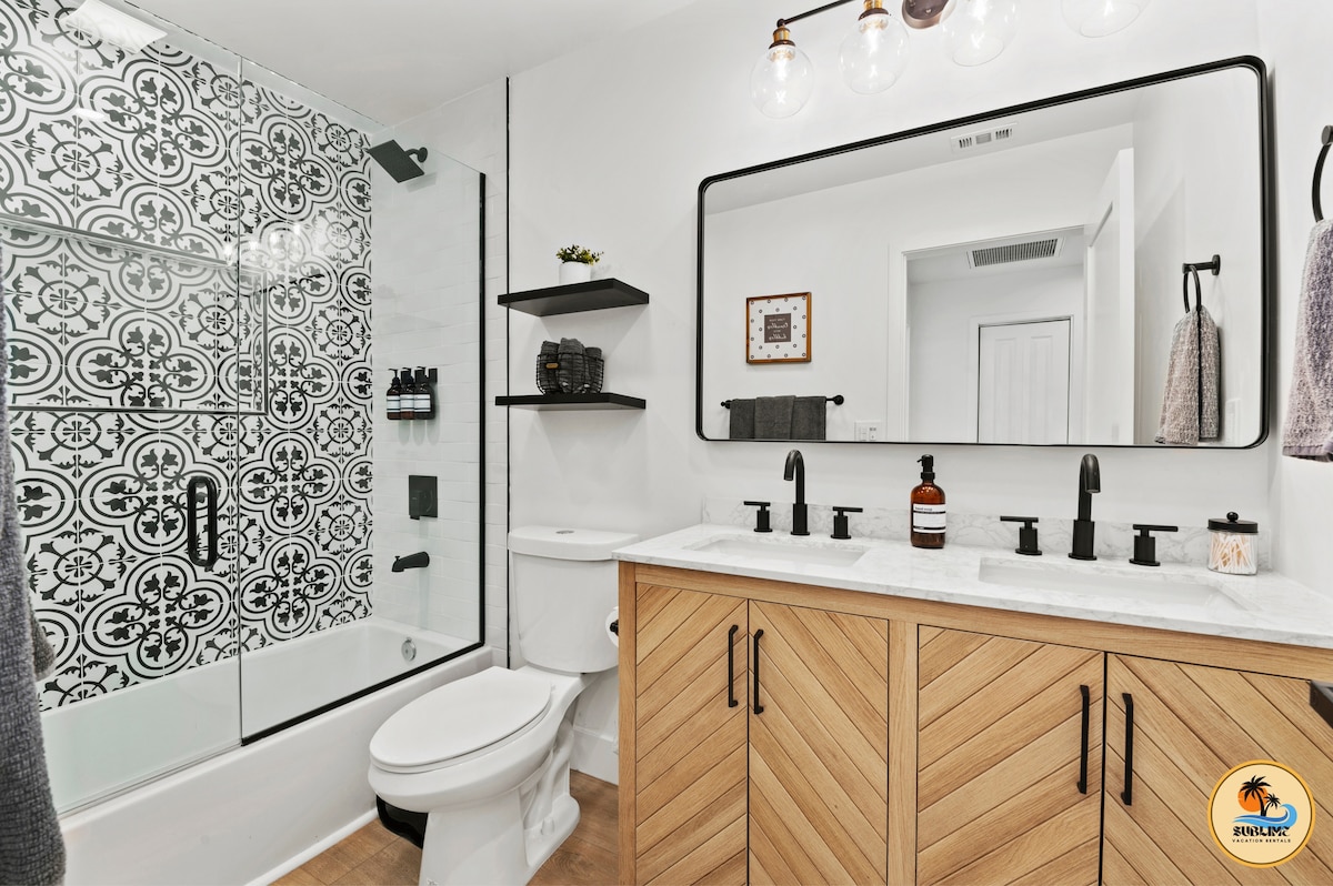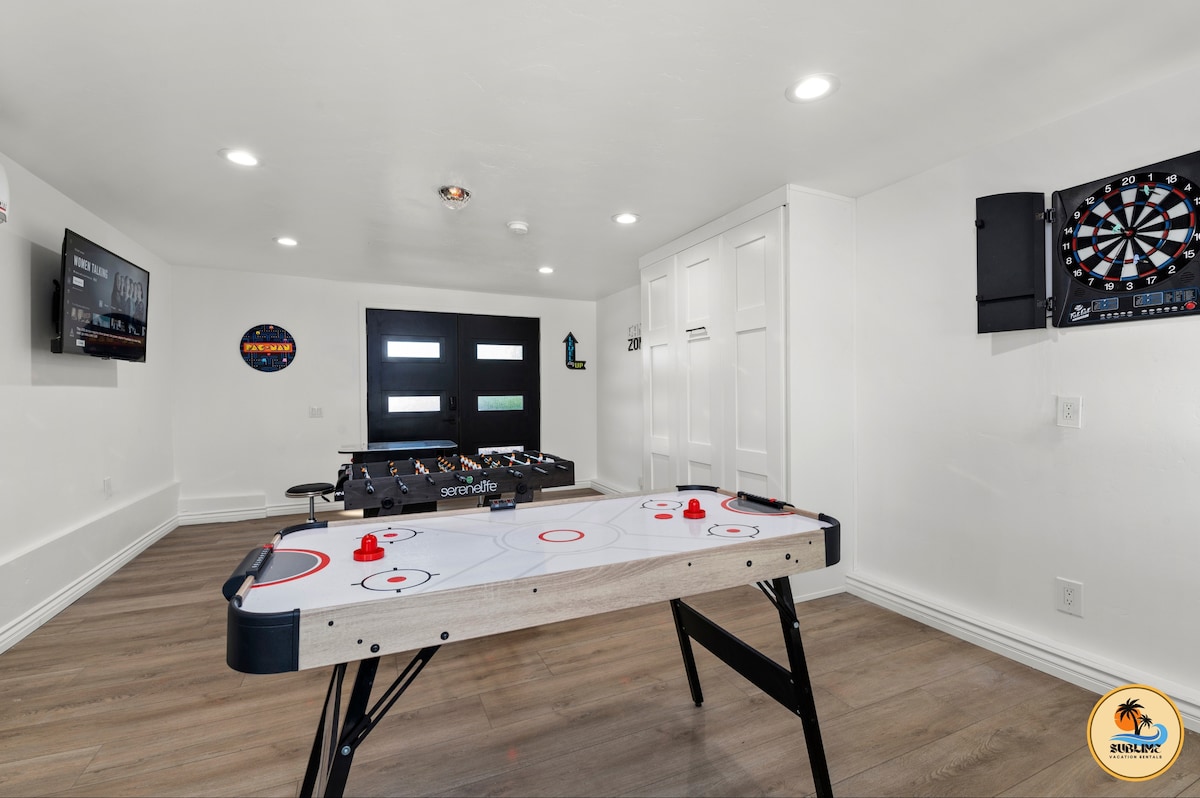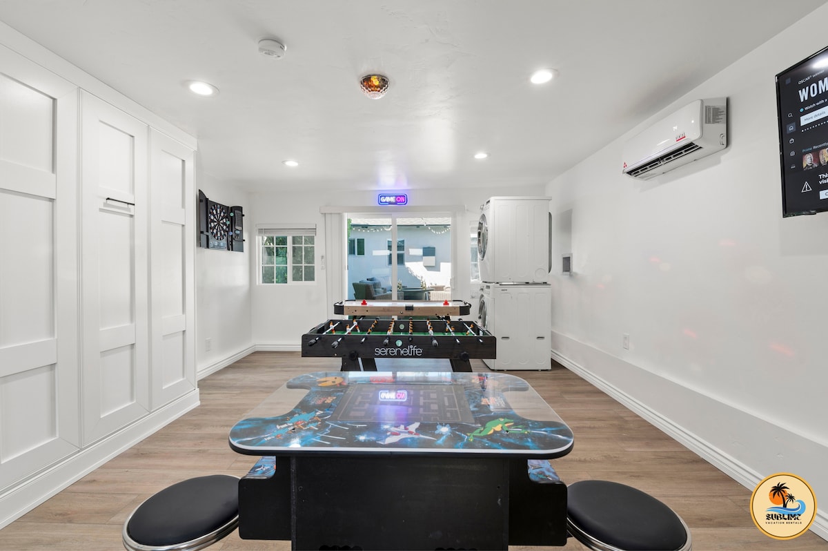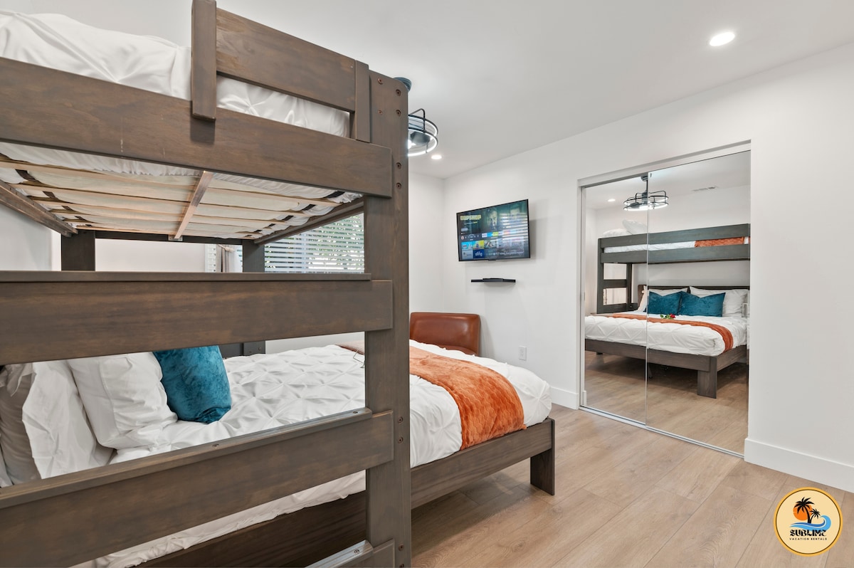 San DiegoCome make amazing memories at this spacious, stylish retreat! With two separate homes + bonus game room that doubles as an extra bedroom, there’s plenty of space for friends or families. You’ll have 7 bedrooms and 4 full baths, with enough sleeping arrangements for 18 guests. Kick back by the saltwater pool, unwind in the spa, hang out around the firepit, or enjoy the games we've got on hand. Inside, the space is modern and comfy, plus you’re super close to all the must-see spots in San Diego!