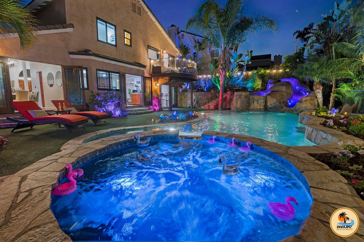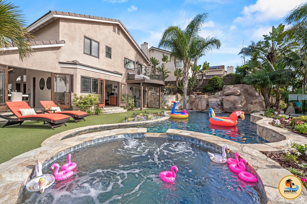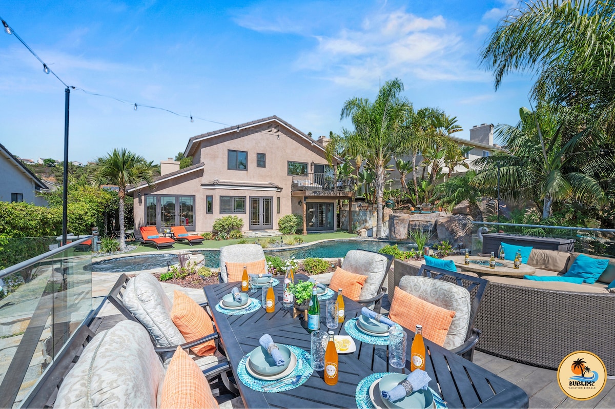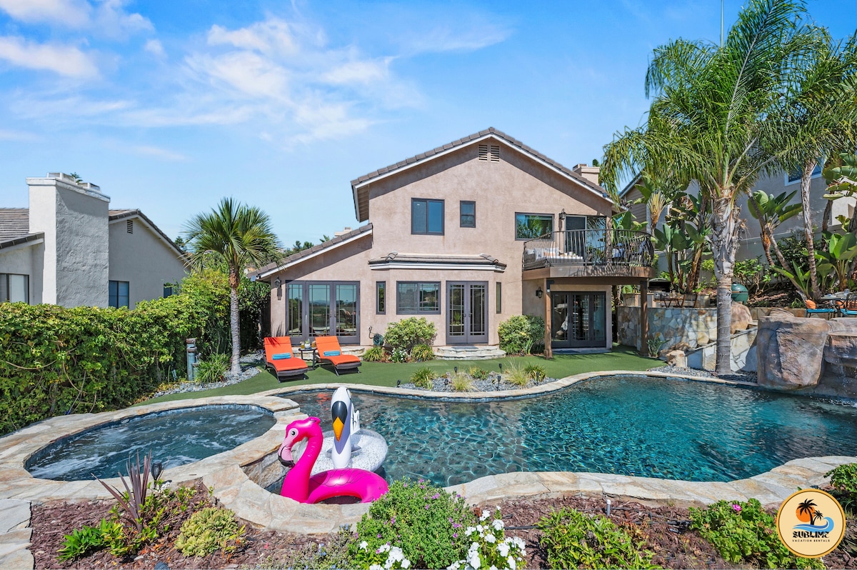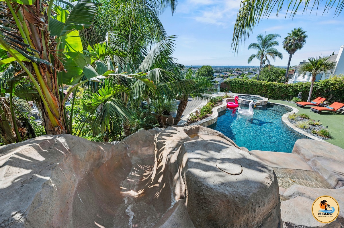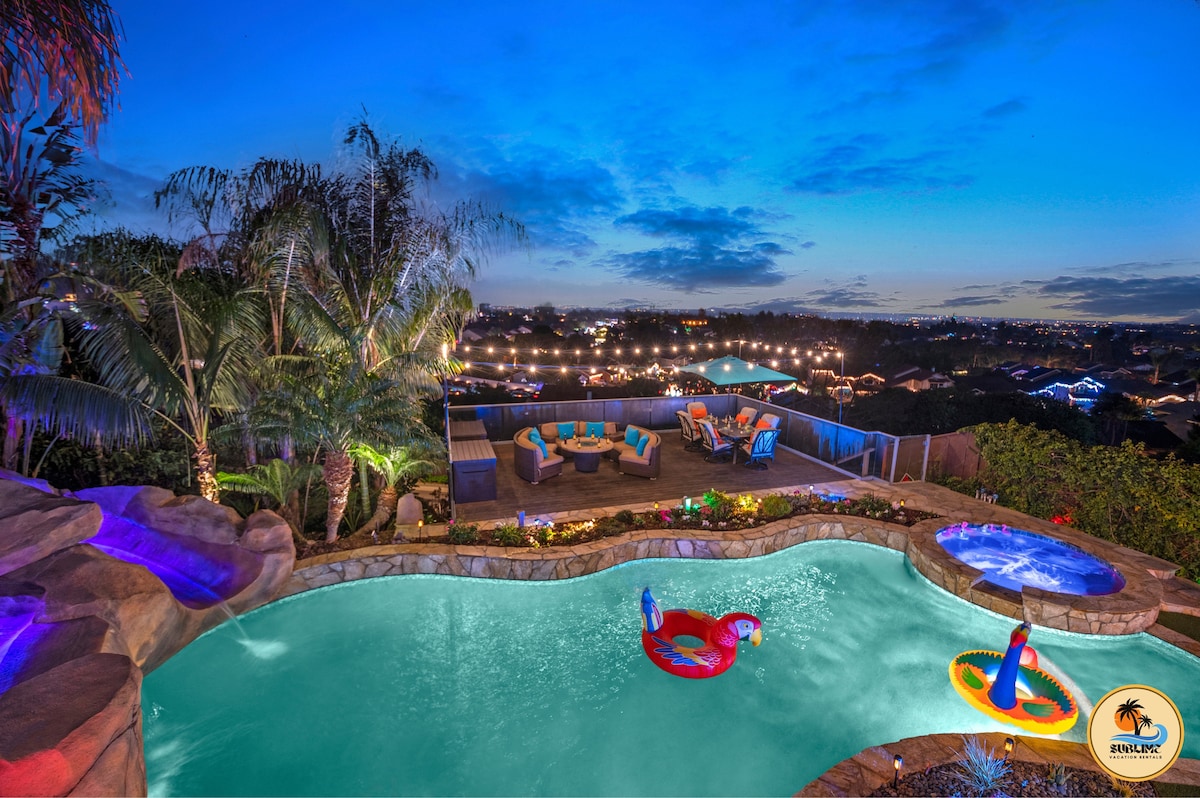 San DiegoSet in the peaceful hills of Rancho Peñasquitos, this spacious, zen-inspired home is made for unwinding. Enjoy the pool, slide, and west-facing views while dining outdoors. Inside, the open layout invites connection, perfect for games, laughter, or laid-back lounging. As evening sets in, relax in the spa or sip a drink on the veranda while the city lights twinkle below. Retreat to any of the 5 bedrooms at night for a peaceful sleep. It’s the ideal space to recharge, reconnect, and feel at home!