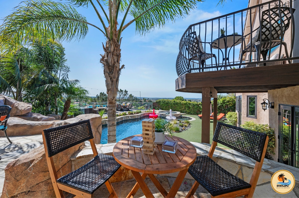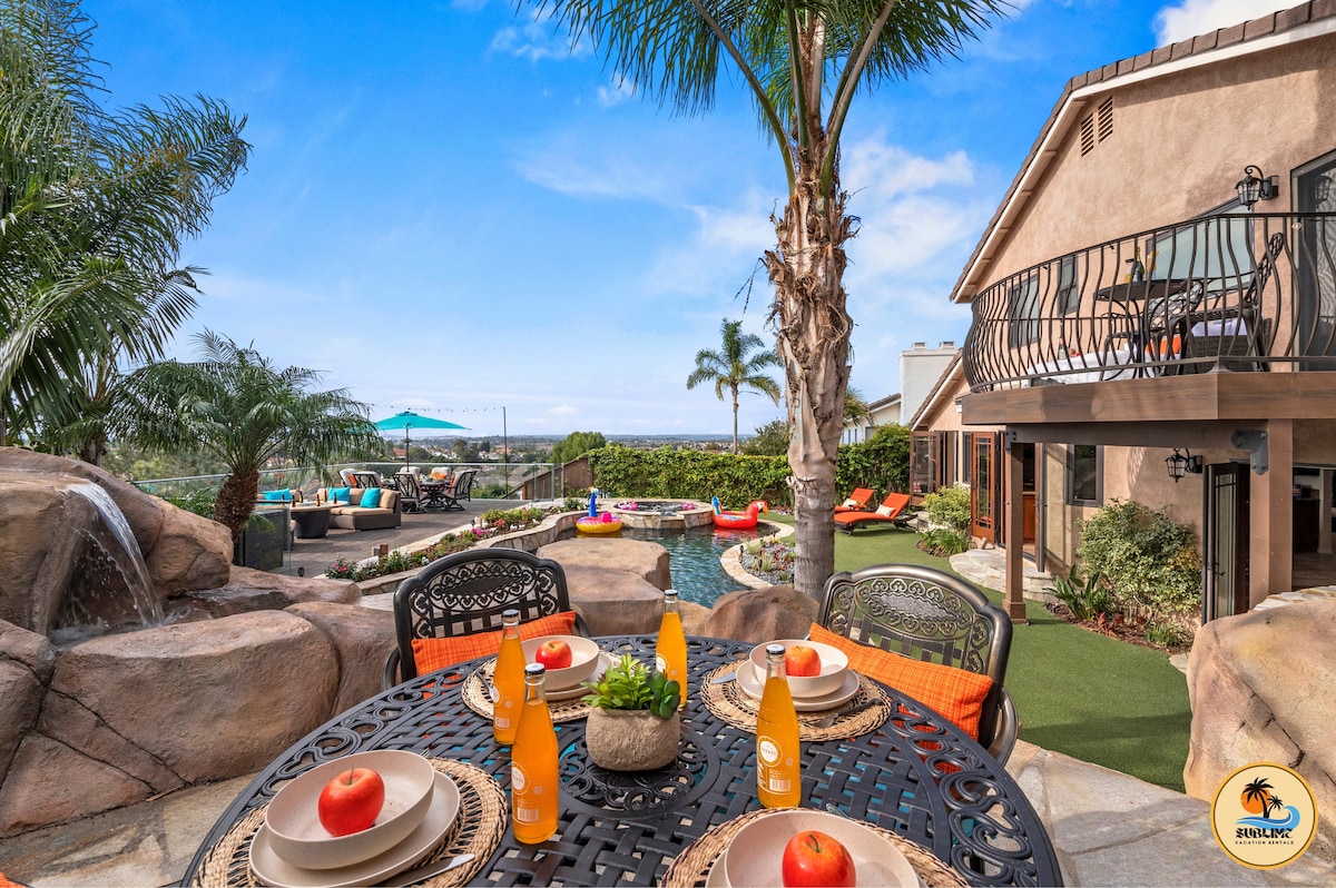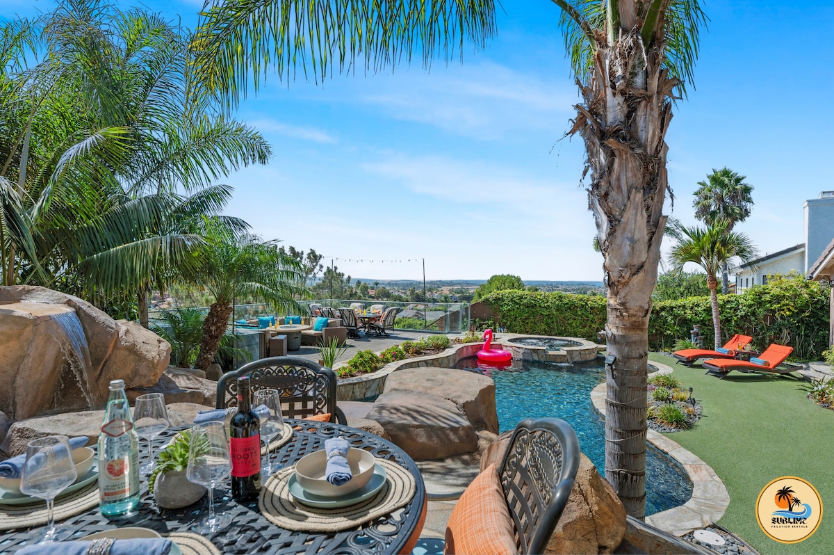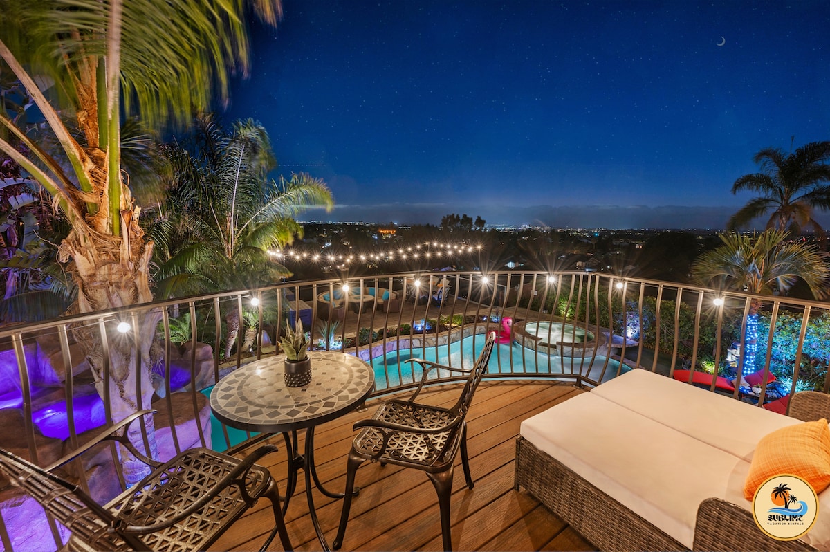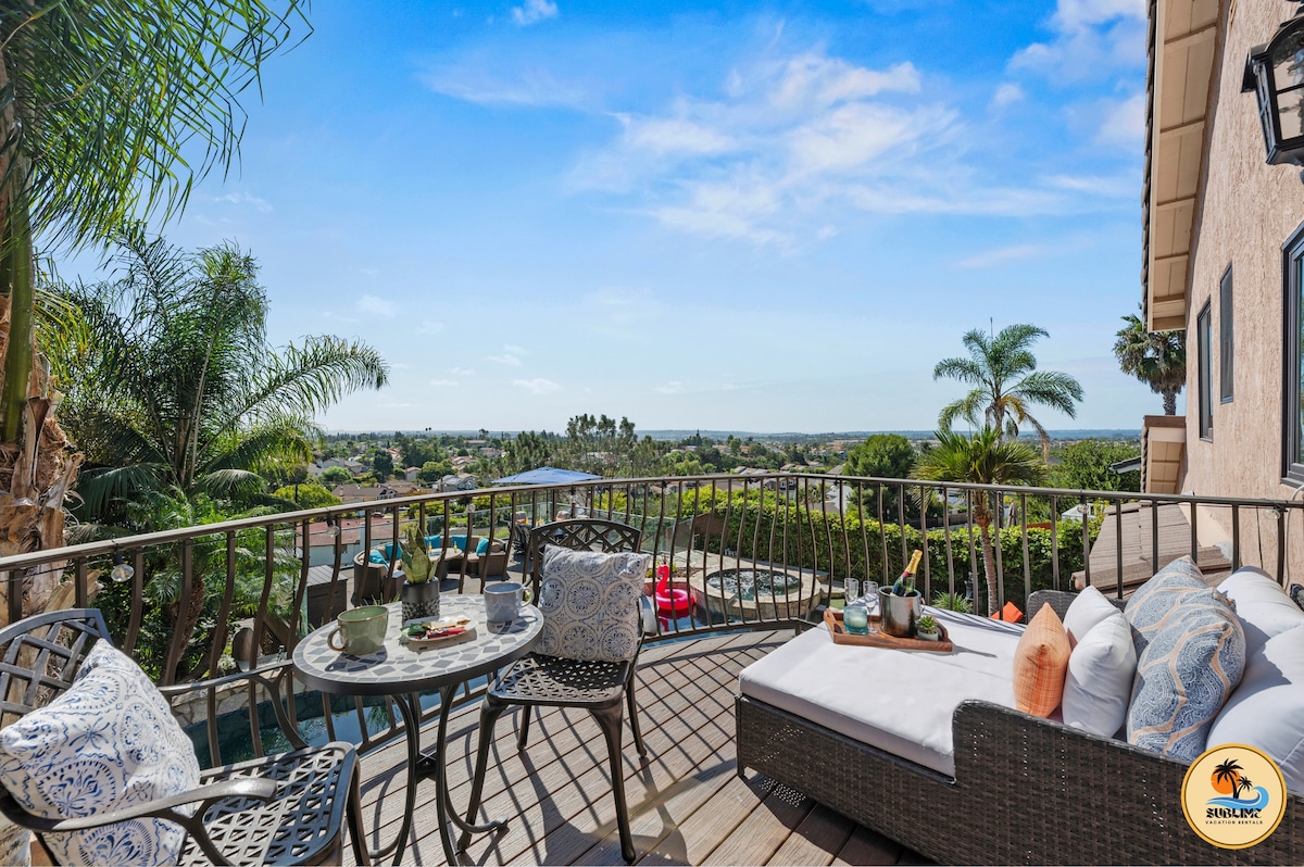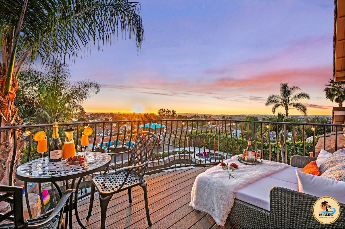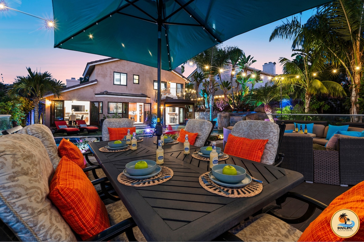 San DiegoSet in the peaceful hills of Rancho Peñasquitos, this spacious, zen-inspired home is made for unwinding. Enjoy the pool, slide, and west-facing views while dining outdoors. Inside, the open layout invites connection, perfect for games, laughter, or laid-back lounging. As evening sets in, relax in the spa or sip a drink on the veranda while the city lights twinkle below. Retreat to any of the 5 bedrooms at night for a peaceful sleep. It’s the ideal space to recharge, reconnect, and feel at home!