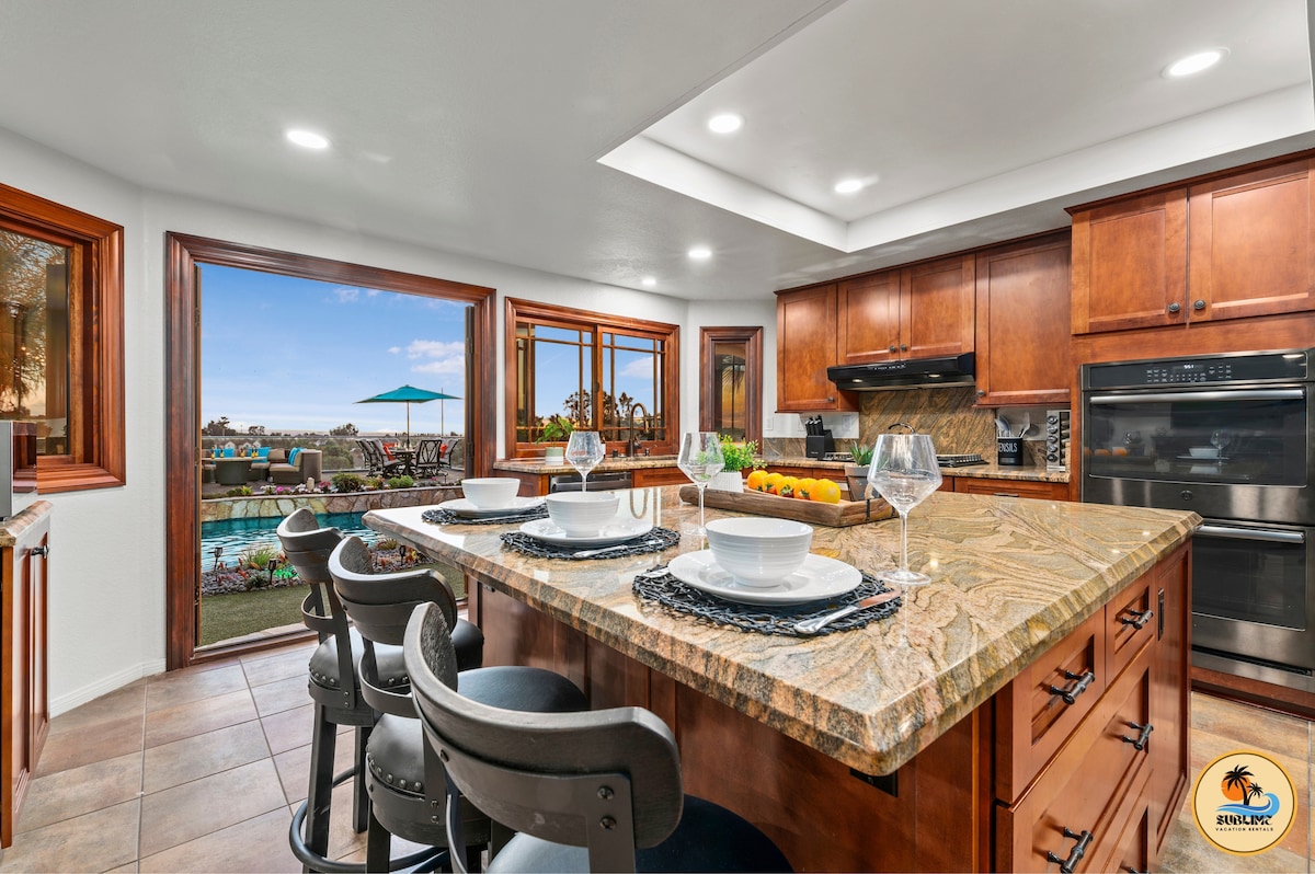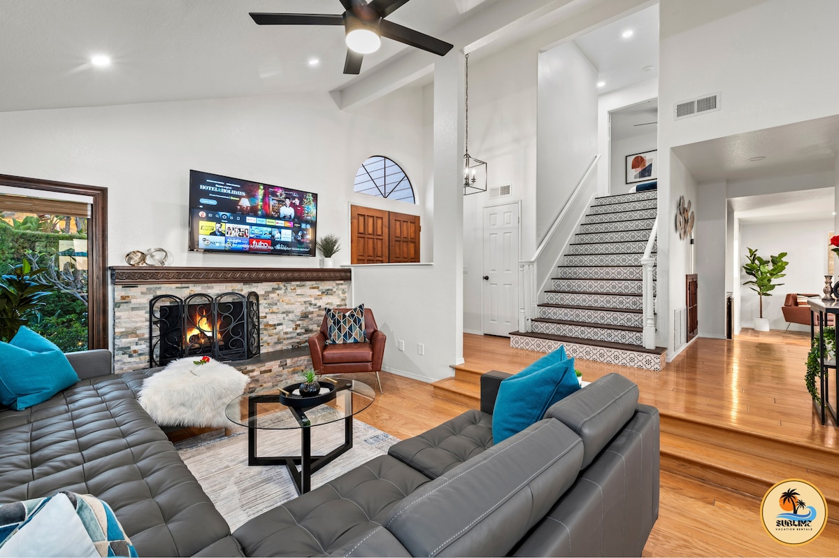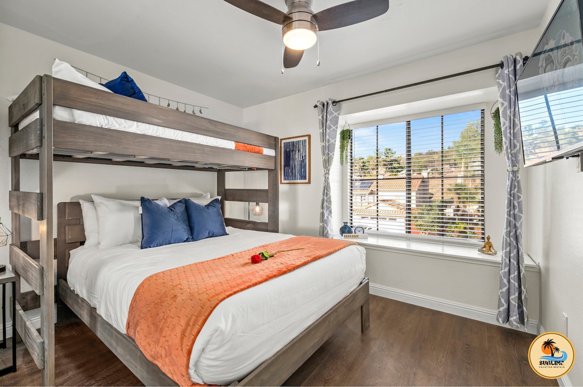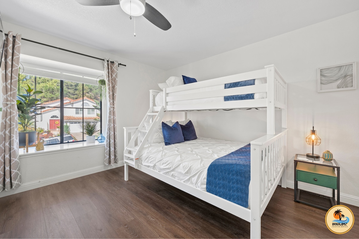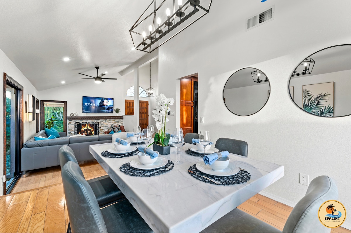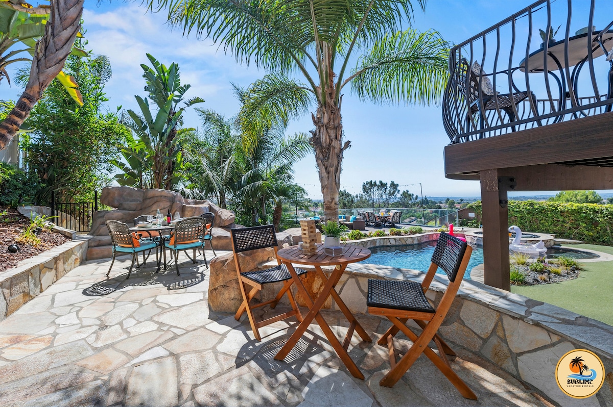 San DiegoSet in the peaceful hills of Rancho Peñasquitos, this spacious, zen-inspired home is made for unwinding. Enjoy the pool, slide, and west-facing views while dining outdoors. Inside, the open layout invites connection, perfect for games, laughter, or laid-back lounging. As evening sets in, relax in the spa or sip a drink on the veranda while the city lights twinkle below. Retreat to any of the 5 bedrooms at night for a peaceful sleep. It’s the ideal space to recharge, reconnect, and feel at home!