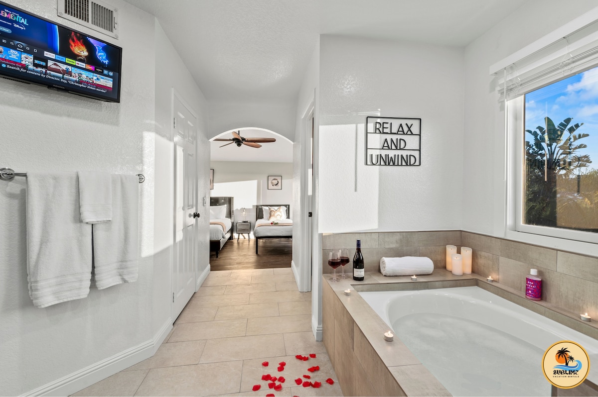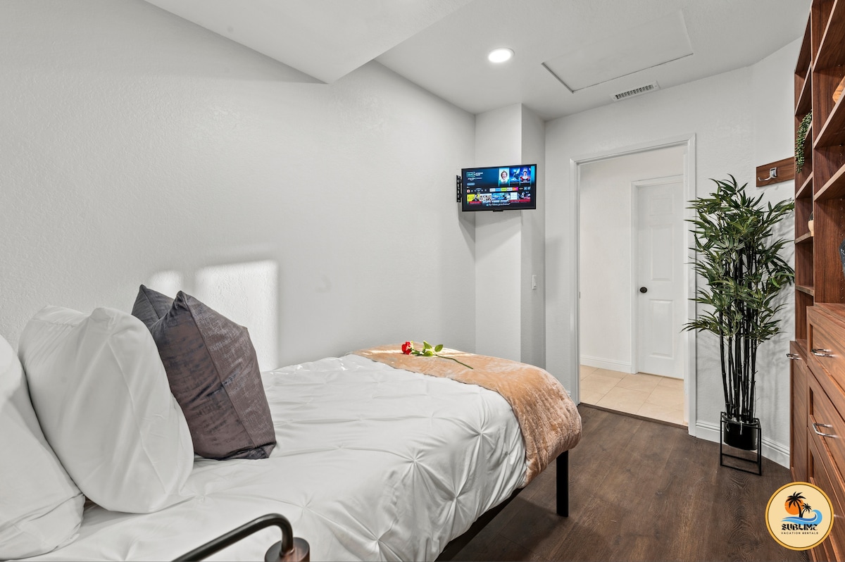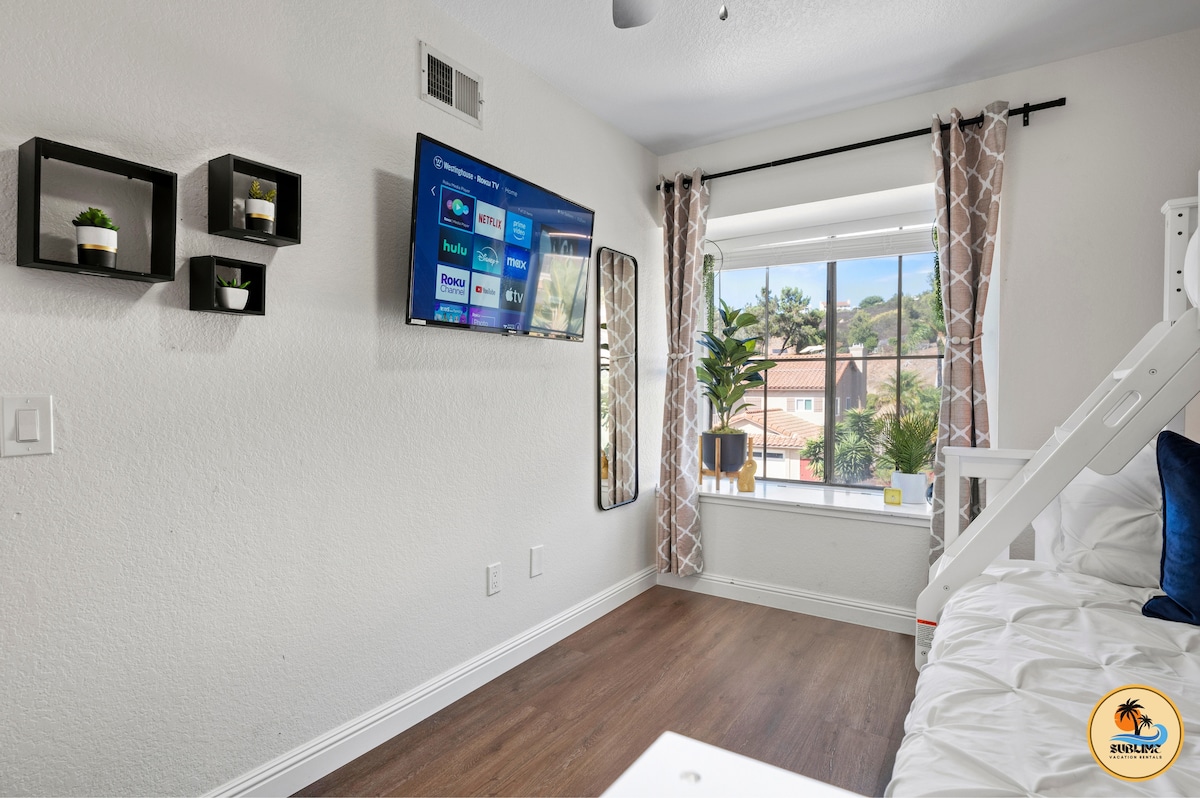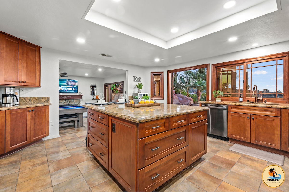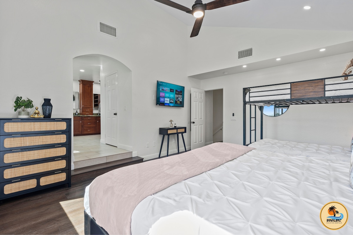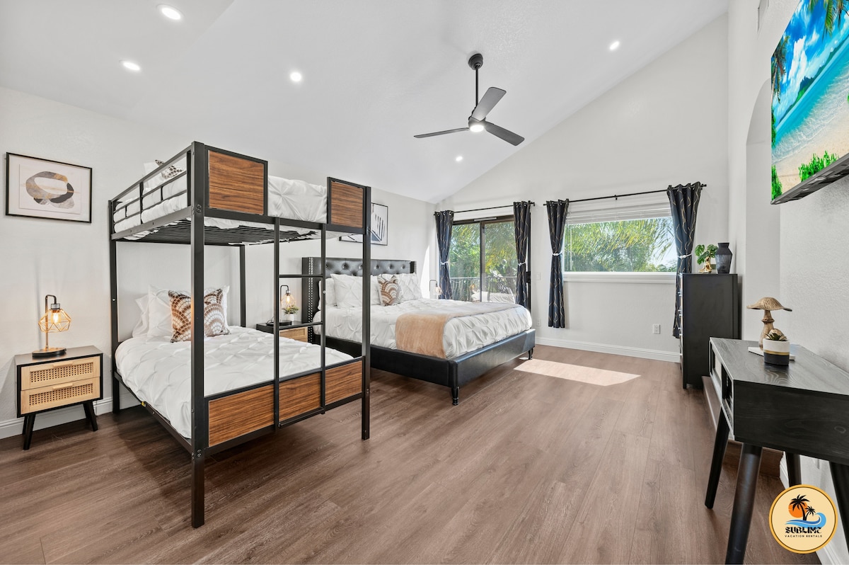San DiegoSet in the peaceful hills of Rancho Peñasquitos, this spacious, zen-inspired home is made for unwinding. Enjoy the pool, slide, and west-facing views while dining outdoors. Inside, the open layout invites connection, perfect for games, laughter, or laid-back lounging. As evening sets in, relax in the spa or sip a drink on the veranda while the city lights twinkle below. Retreat to any of the 5 bedrooms at night for a peaceful sleep. It’s the ideal space to recharge, reconnect, and feel at home!
