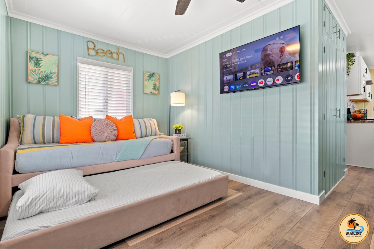 San DiegoJust steps from the sand, this charming beach bungalow is the perfect spot to kick back and enjoy the coast. You’ll be close to all the action while still having your own space to relax. Outside, there’s a ping pong table, mini golf, workout gear, and even an insta-worthy selfie wall. Inside, the space is cozy and stylish, with plenty of room for everyone to sleep comfortably. After a day out, grab your favorite drink and catch the sunset from the front yard—it’s the perfect way to wind down.